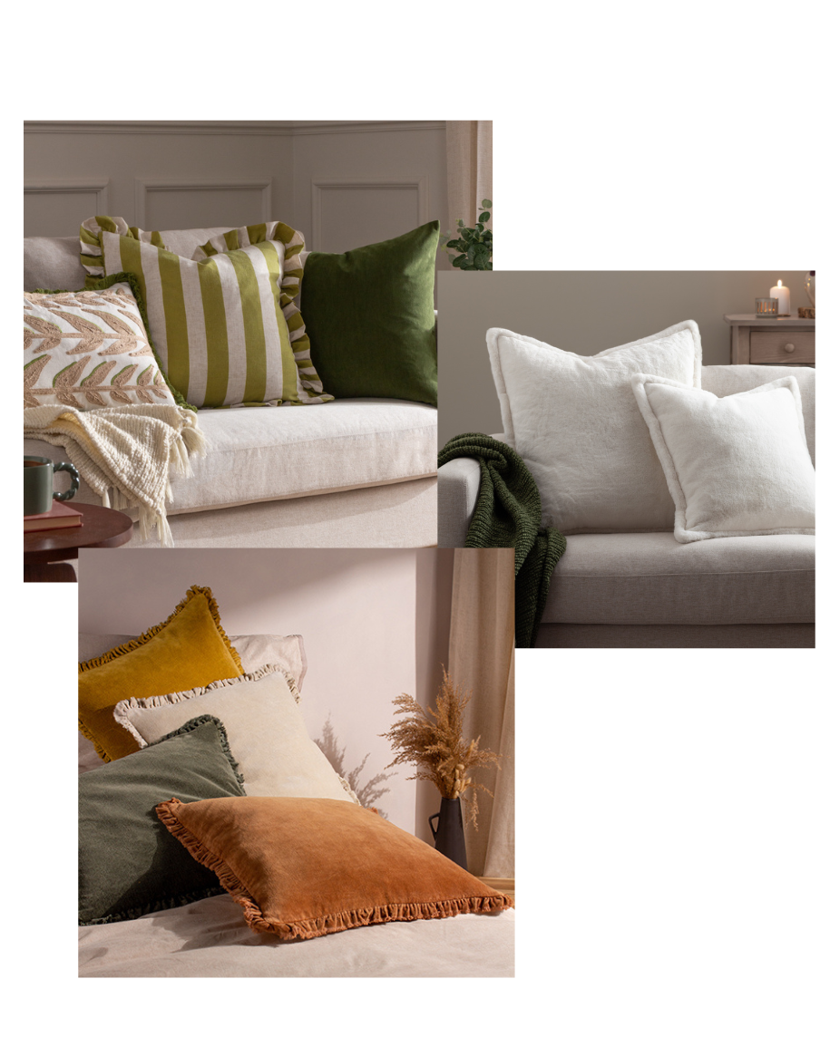 - Cotton, velvet, boucle and more – high quality, gorgeous materials to make our cushions comfort-led.