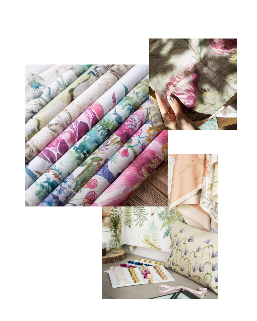 Our talented Voyage design team create stunning fabric collections, inspired by florals, countryside wildlife, coastal landscapes, and modern abstract designs.